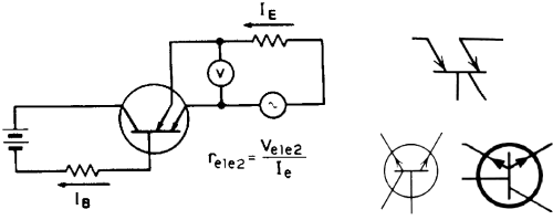 RCA wasn't the only one trying 'strange' transistor variations in those days. RCA didn't even patent the dual-emitter transistor themselves, only some circuits using it, including the one above, which they patented litterally the day before the IRE presentation.Someone else working on such transistors was W3NHO, who graduated on research into them at the university of Pennsylvania. His MSc thesis [5] reveals that he worked with transistors made by Philco. In his transistor the emitters were not equal; the extra emitter served as a 'control electrode' to control the amplification without adverse effect on the large-signal behaviour. And more people and companies were trying such transistor variants, as witnessed by several patents. But the RCA 3746 seems to have been the only actual product.